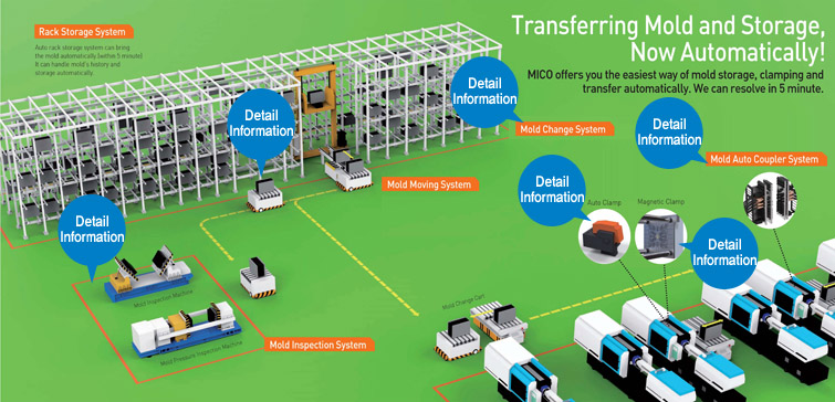 Main products include the quick die change system (Q.D.C system), the mold lack ,mold inspection machine, turn over machine, and the mold moving cart
