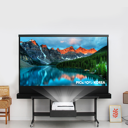 When not in use, the screen is rolled into the main body to maintain a wide view.